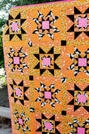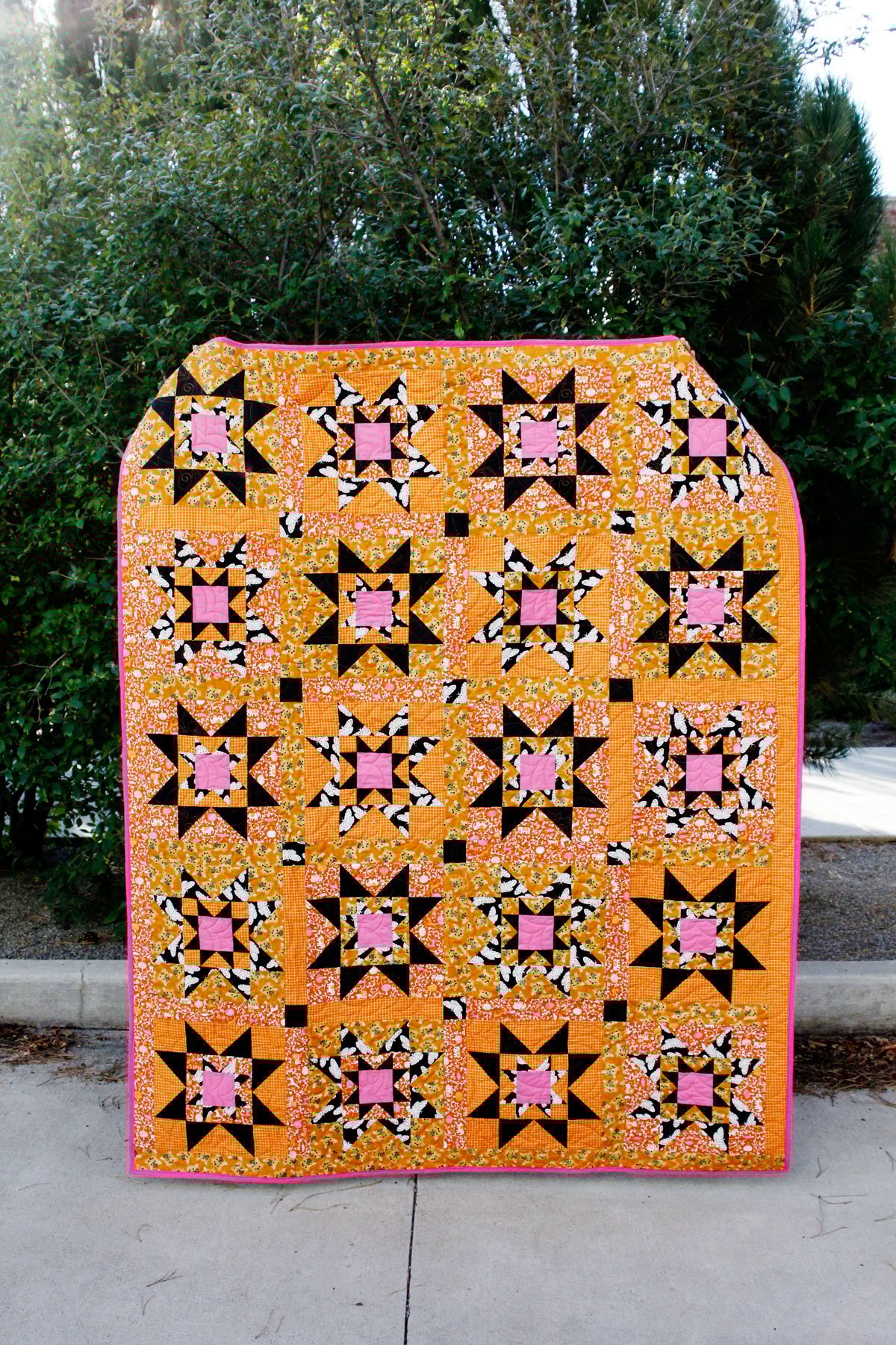 This quilt has spider web vibes! It's simple and gorgeous! Create sawtooth blocks inside sawtooth blocks for a bold quilt. Use different fabrics to make up the yardage for a varied quilt design.