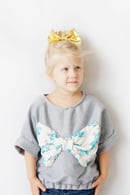The KALEIDOSCOPE knit top is a carefree and boxy top, perfect for playing in style! This comfy top can be made in any knit fabric including sweatshirt fleece, interlock and sweater knits! Upcycle an old sweater into an adorable and trendy top for your kiddo! Banded dolman sleeves make this a quick and satisfying sew! Two versions for boys and girls, boxy and flared. Make it with an elastic hemline or bow add-on!
