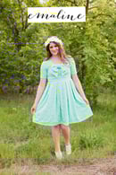 The EMALINE dress is a knit dress with a pleated skirt and banded sleeves. This easy dress is quick to sew and so cute! The band hits at the natural waist for a flattering fit.